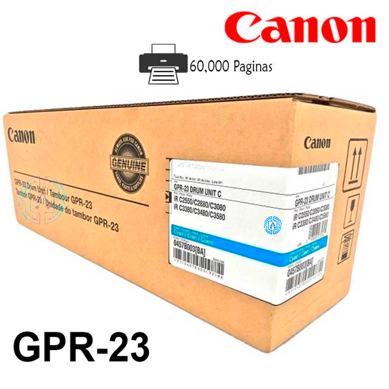 Comprar el tambor (drum) original Canon GPR-23 Cyan (0457B003AA) es esencial para garantizar impresiones láser de alta calidad, colores vibrantes y funcionamiento eficiente en impresoras Canon iR C2550/2880/3380. Ofrece un rendimiento de hasta 60,000 páginas, lo que asegura durabilidad y reducción de fallas técnicas en entornos de alto volumen