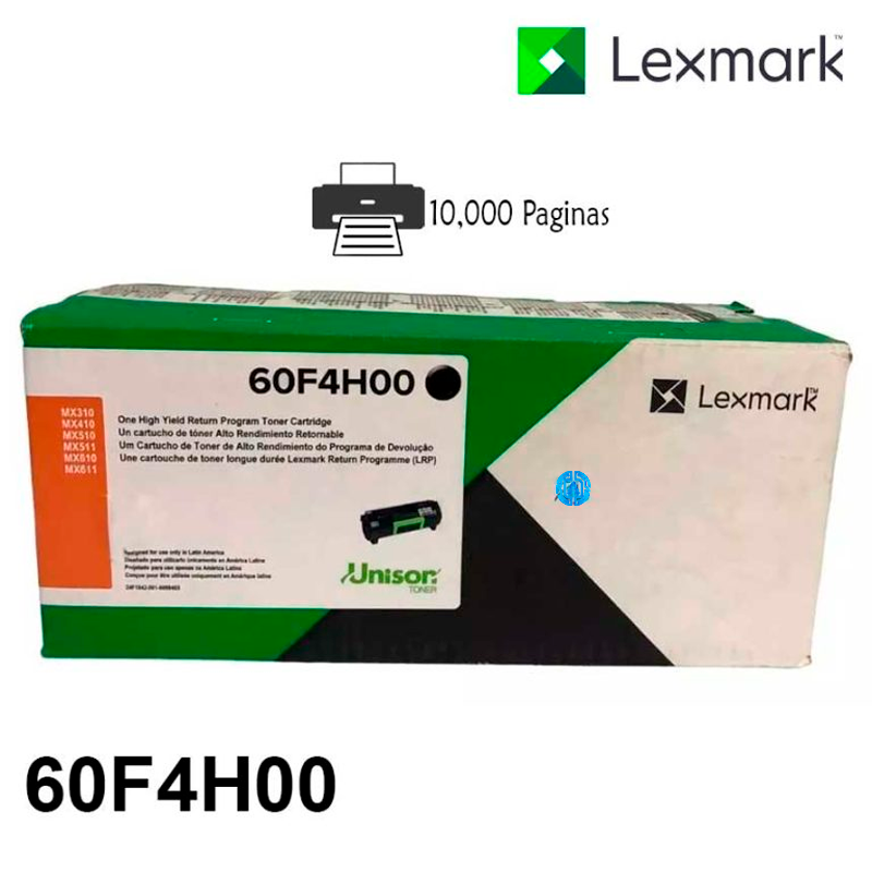Toner Lexmark 60F4H00 Negro Los consumibles Tiene un rendimiento 10,000 paginas Lexmark originales están diseñados para ofrecer un funcionamiento óptimo con las impresoras Lexmark, lo que permite obtener una excelente calidad de impresión desde la primera hasta la última página. Maximice sus ahorros y disfrute de una excelente calidad con los cartuchos Lexmark color Negro originales. En comparación con los cartuchos de rendimiento estándar, los cartuchos de alto rendimiento ofrecen un menor costo por página y una mayor cantidad de páginas impresas. Ideal para la impresión de grandes volúmenes.