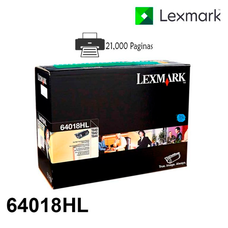 Toner Lexmark 64018HL Negro Los consumibles Tiene un rendimiento 21,000 paginas Lexmark originales están diseñados para ofrecer un funcionamiento óptimo con las impresoras Lexmark, lo que permite obtener una excelente calidad de impresión desde la primera hasta la última página. Maximice sus ahorros y disfrute de una excelente calidad con los cartuchos Lexmark color Negro originales. En comparación con los cartuchos de rendimiento estándar, los cartuchos de alto rendimiento ofrecen un menor costo por página y una mayor cantidad de páginas impresas. Ideal para la impresión de grandes volúmenes.