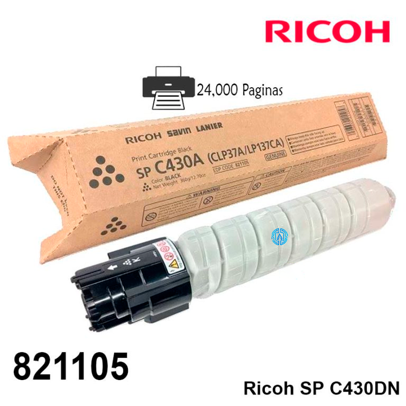 Toner Ricoh 821105 Negro ricoh son desarrollados en conjunto con el diseño de sus impresoras para obtener un tándem de inigualable calidad de impresión y duración de todos sus componentes. El uso de toner original ricoh te asegura que su toner contiene la formulación más apropiada para que obtengas unas imágenes claras, nitidas y colores brillantes con la mejor relación calidad-precio para que tus impresoras ofrezcan los máximos resultados para los que fueron diseñadas desde la primera a la última copia compatibilidad Ricoh SP-C430DN, SP-C431DN